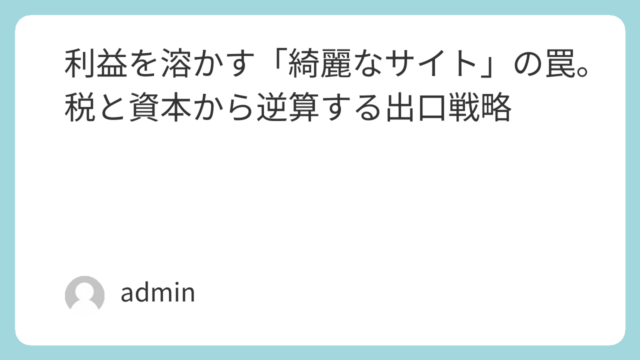 マーケティング戦略 利益を溶かす「綺麗なサイト」の罠。税と資本から逆算する出口戦略