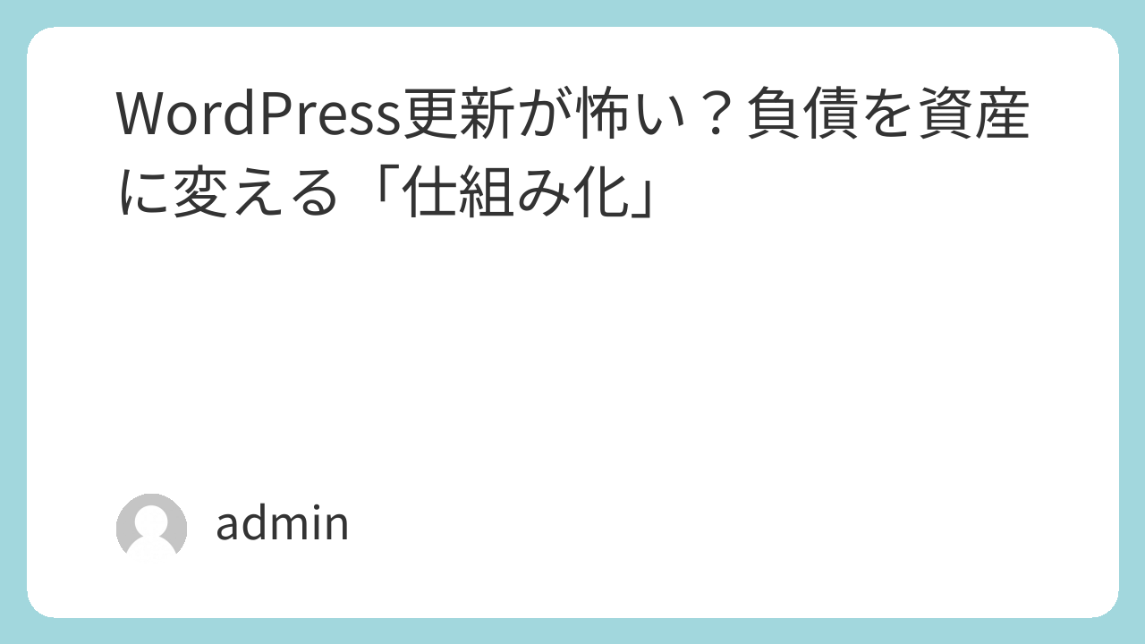 WordPress更新が怖い?負債を資産に変える「仕組み化」